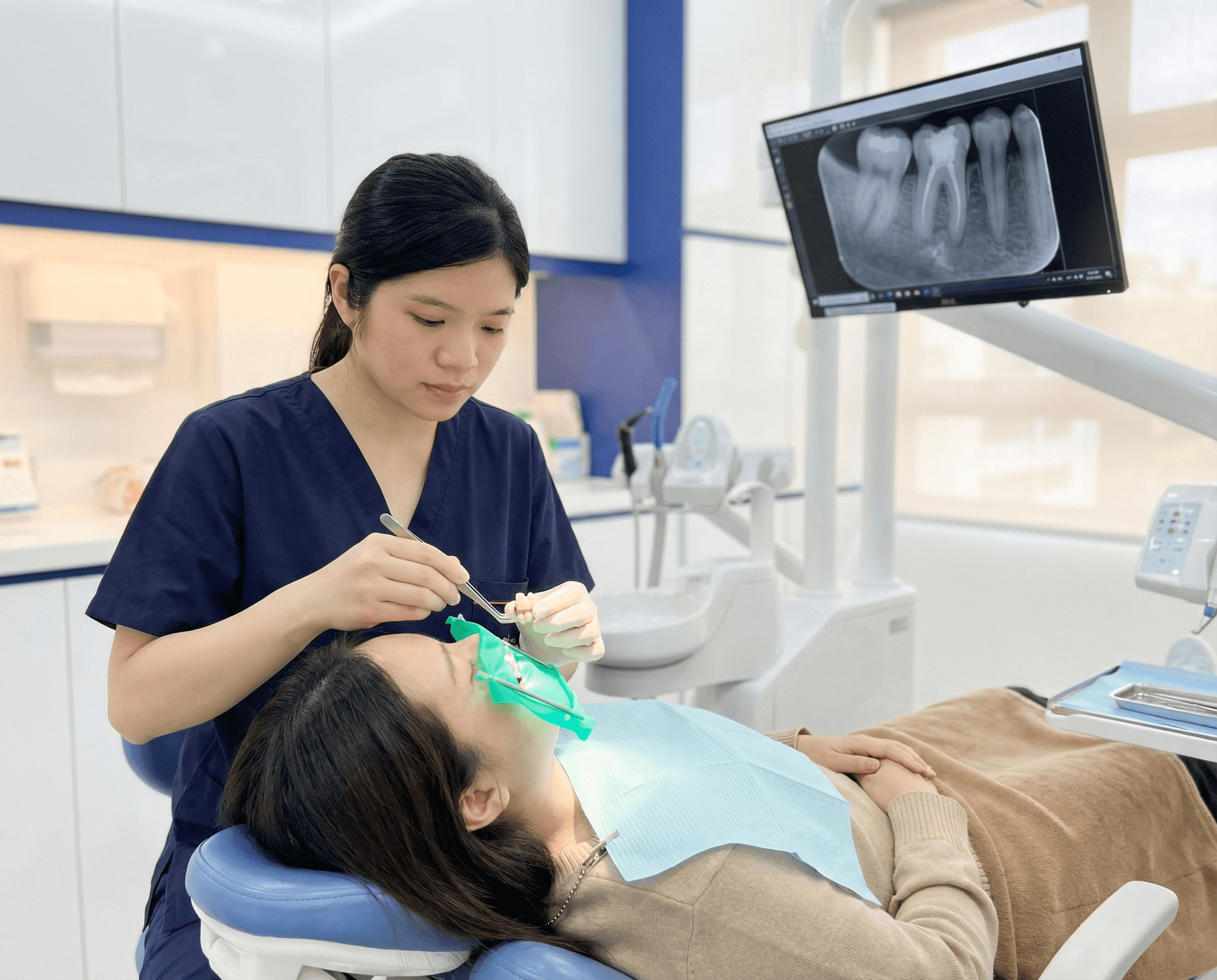 The dentist examines the tooth or missing area and plans the restoration.