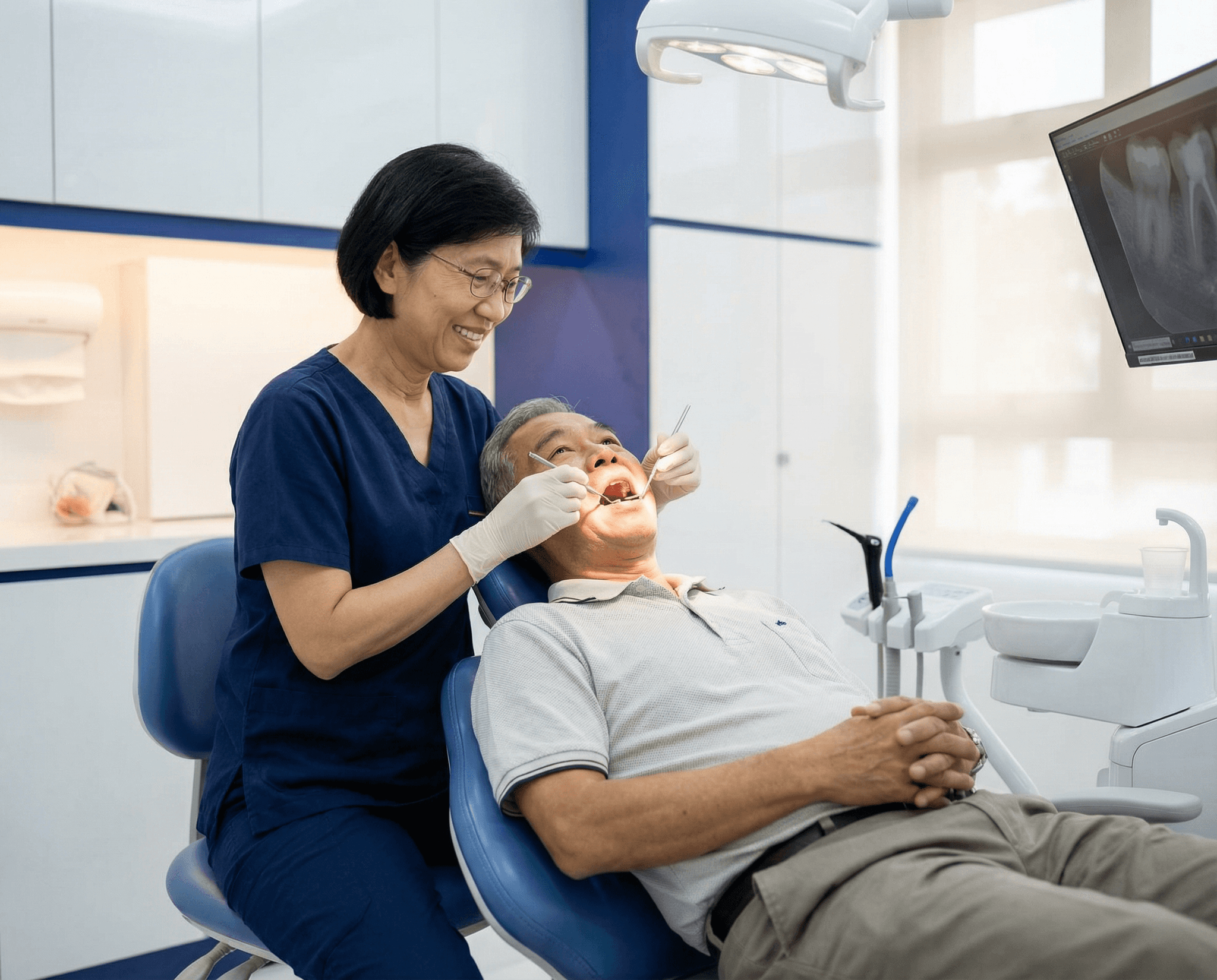 The dentist examines your teeth and assesses your risk of tooth decay.