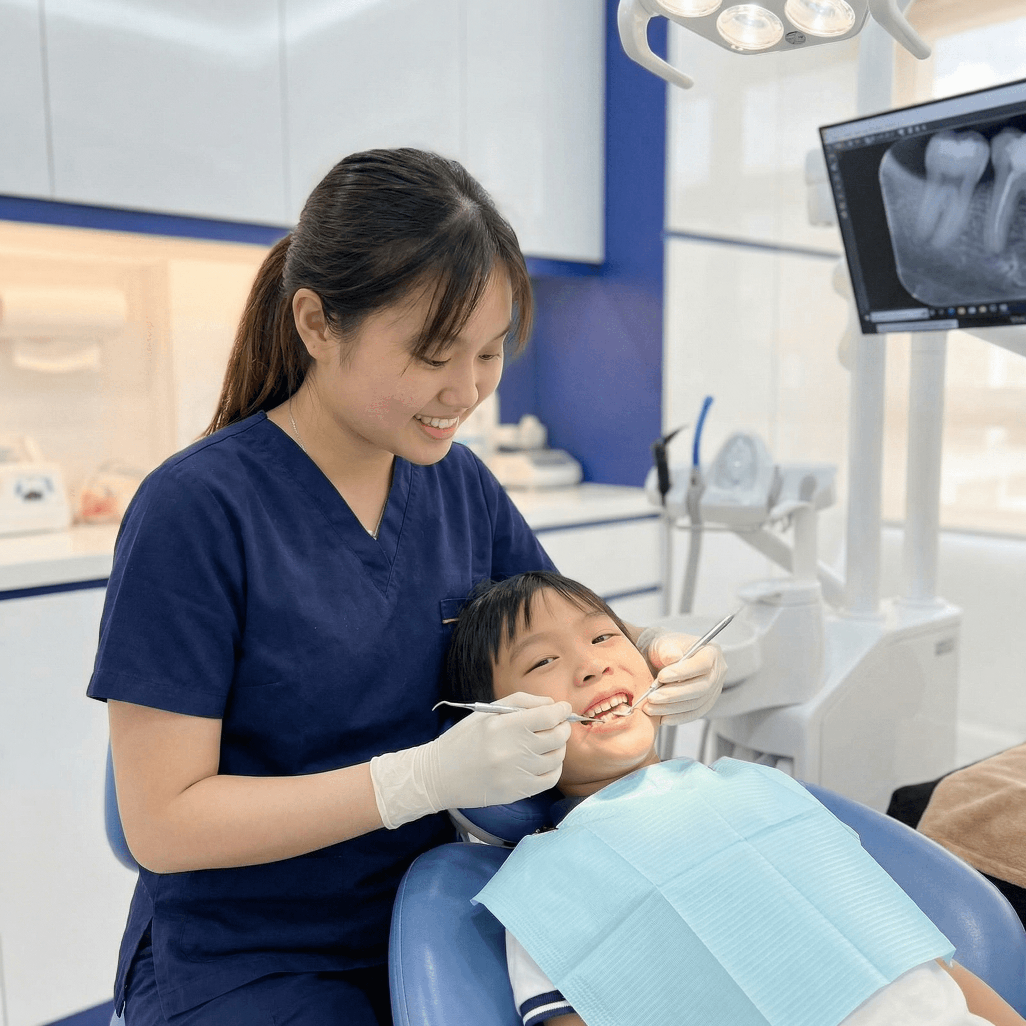 Teeth are polished for a smooth finish, with fluoride applied if selected.